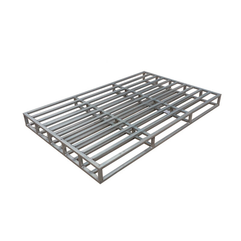 AA型直角雙面鋼托盤 產品編號:SMTPAA1218150 產品自重:54kg 產品名稱:直角雙面托盤 產品載重:1500kg 產品規格:W1200×L1800×H150 產品配置:采用鍍鋅方管20*30*1.5,間隔98mm焊接。